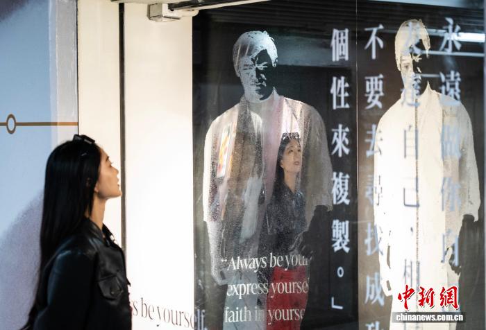 图为市平易近正在港铁中环站内乱的特铺地区观光影戏海报、人奇模子等铺品。记者 侯宇 摄